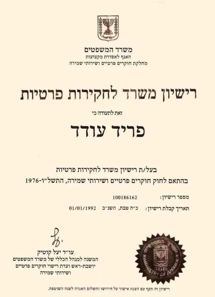 פריד חקירות – משרד מורשה עם רישיון בתוקף ממשרד המשפטים